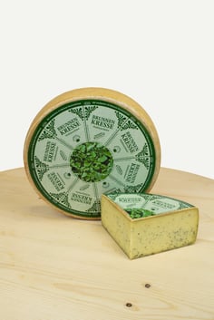 Der Brunnenkresse - ein Halbhartkäse sorgfältig gefertigt mit frischer dunkelgrüner Kresse aus dem Nachbardorf Wynau.